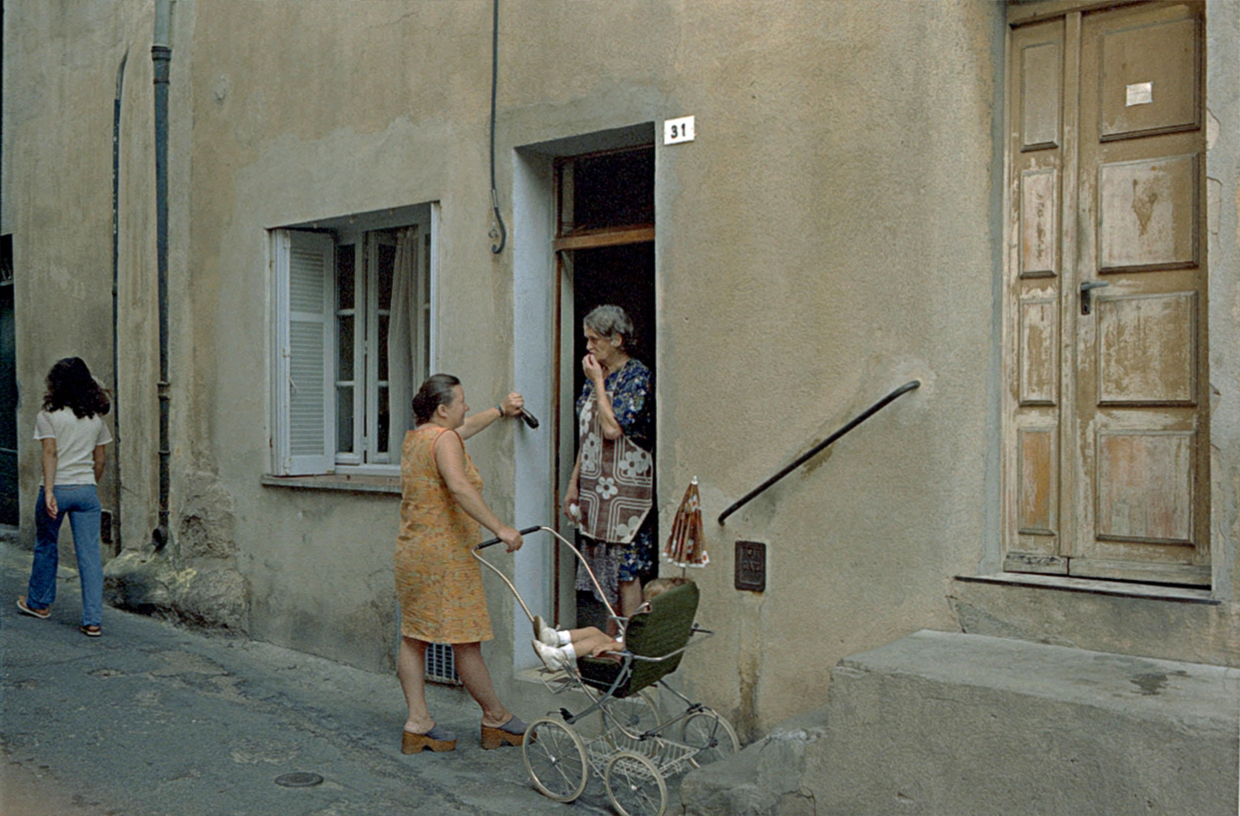 Am Lebensmittelladen ca. 1975Kleinbild analog / digital überarbeitet